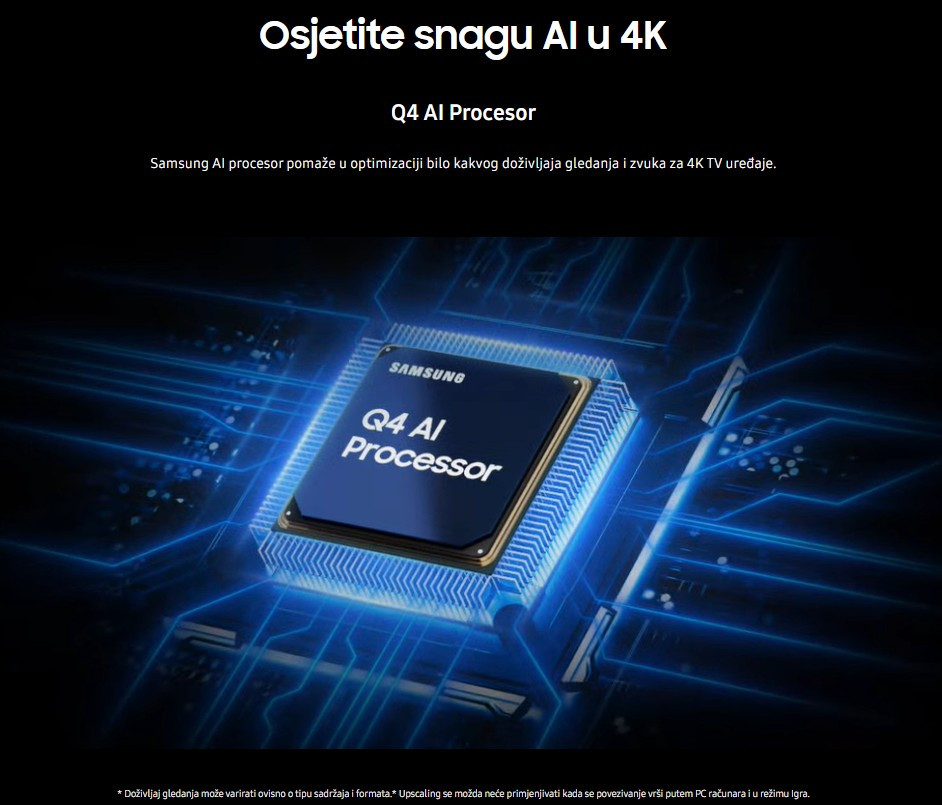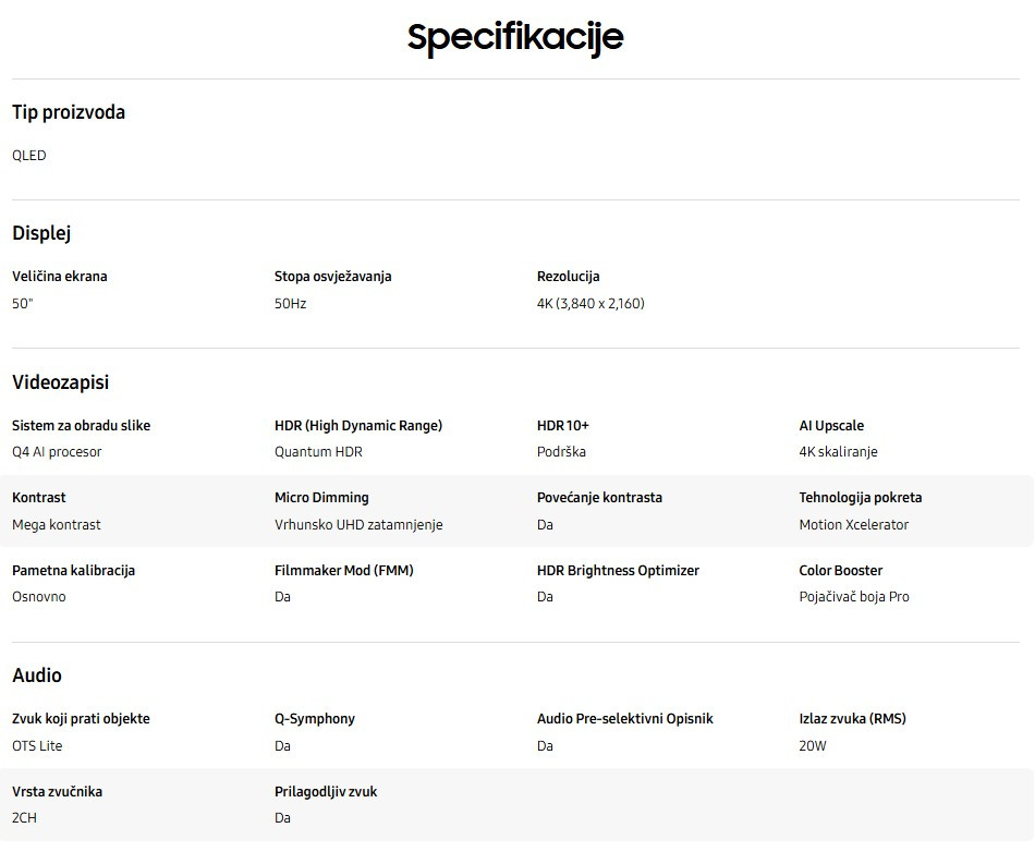 Samsung QLED 4K TV je moderan i mocan televizor od 127 cm (50 inca) koji pruža vrhunsko vizualno iskustvo optimizirano za modernu kucnu zabavu. Kao dio Samsungove QLED TV linije, ovaj model je dizajniran za one koji žele žive boje i pametne funkcije.