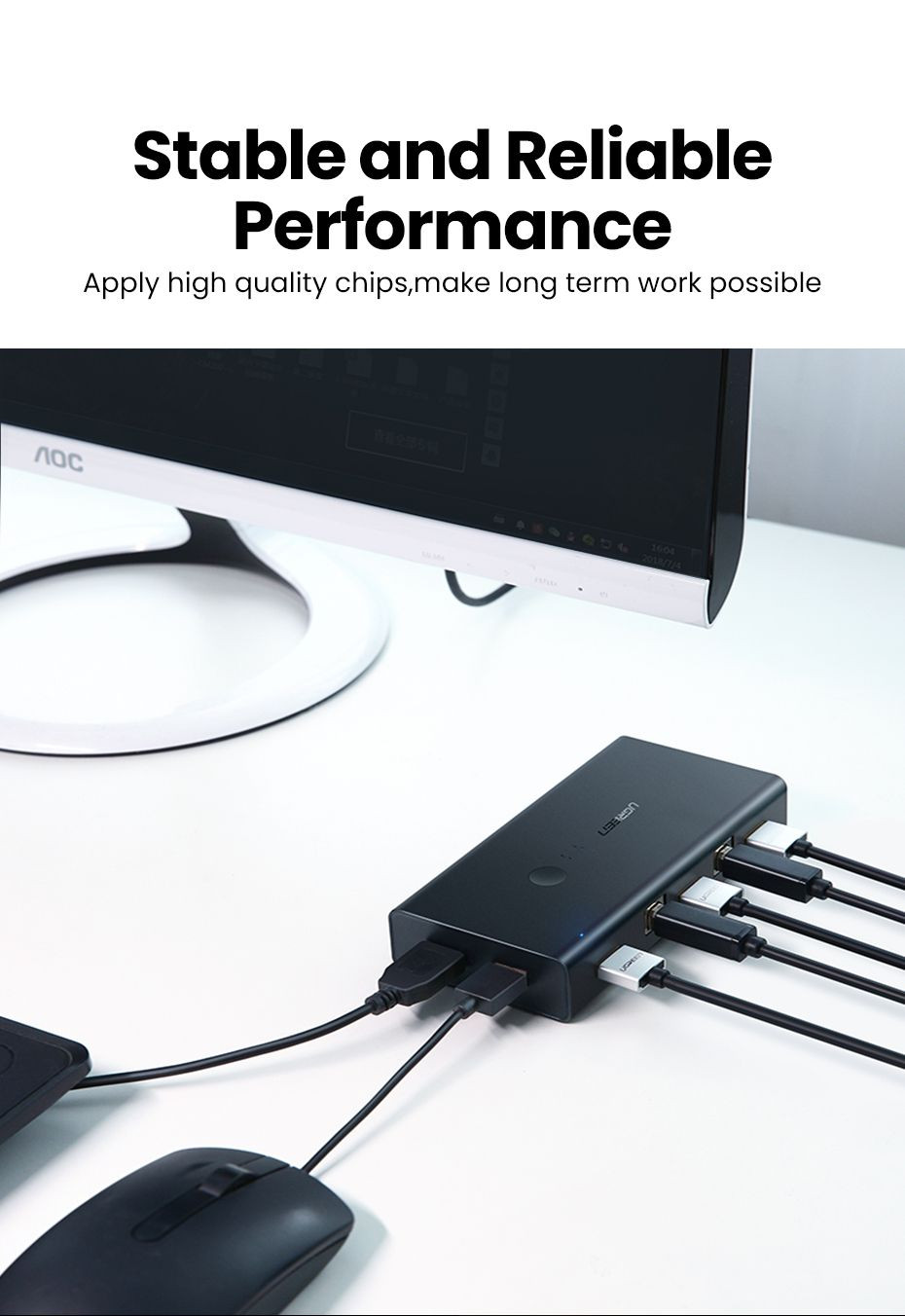 UGREEN KVM prekidač vam omogućava kontrolu dva računara sa 4K ekranom i jednim setom kontrola (miš i tastatura).