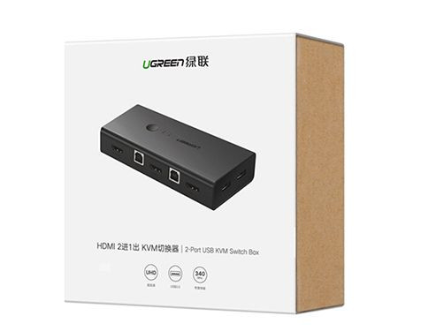 UGREEN KVM prekidač 2xHDMI vam omogućava kontrolu dva računara pomoću jednog 4K monitora. USB priključak, visoka rezolucija i jednostavan za korištenje.