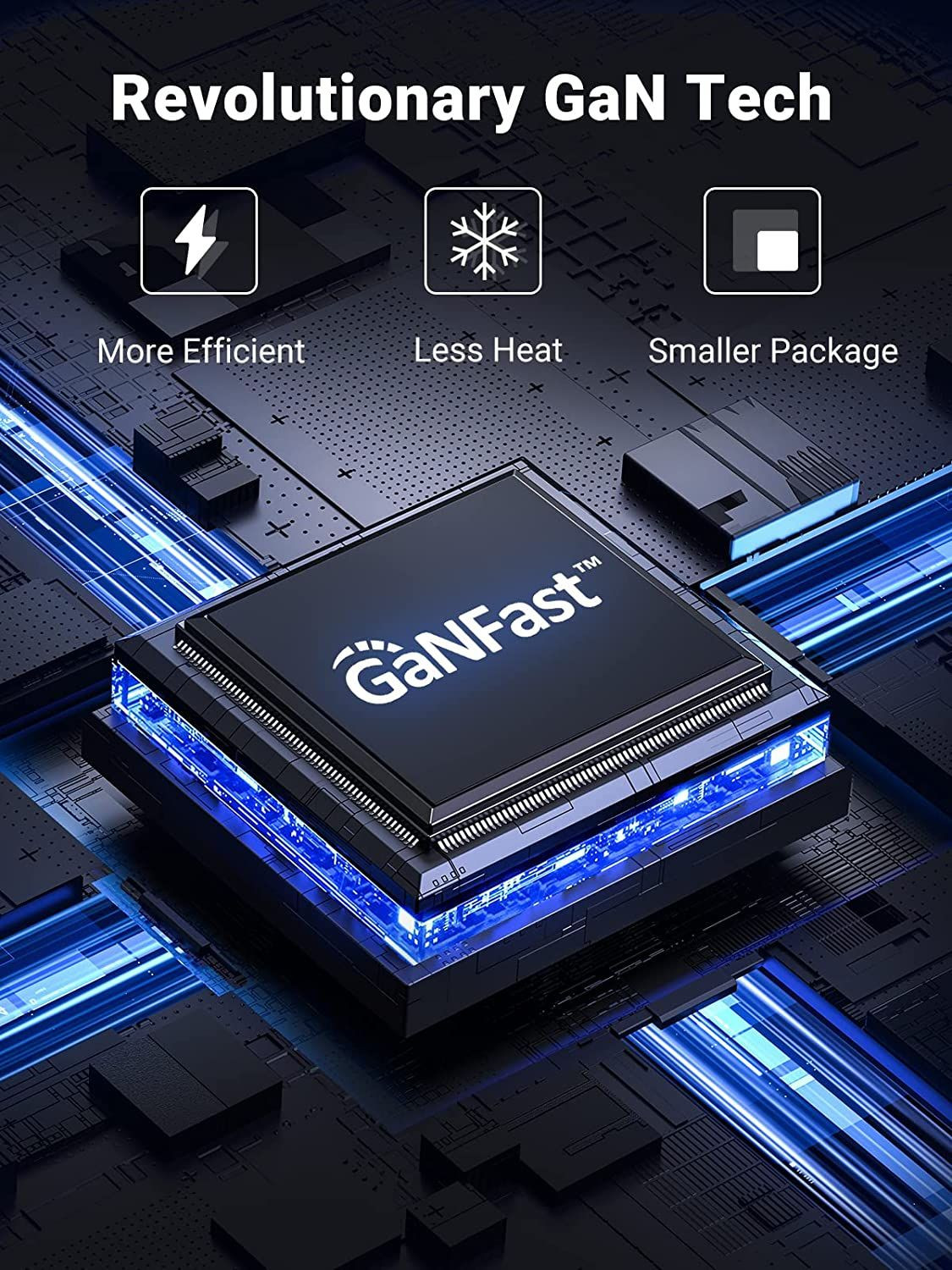 Zahvaljujući vodećem GaN čipu, efikasnost punjenja je značajno povećana, generisanje toplote je poboljšano, veličina USB-C punjača je smanjena bez žrtvovanja kvaliteta ili performansi.