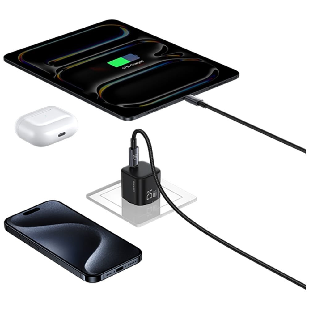 - Brzo punjenje od 25 W: Pruža dovoljno snage za efikasno punjenje mobilnih telefona i tableta putem Type-C porta.