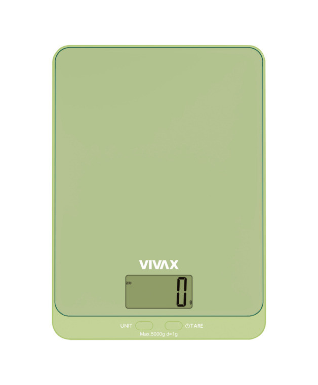 Vivax kuhinjska vaga KS-502B je praktičan mali dodatak koji znatno olakšava kuhanje i spremanje omiljenih slastica. Svojom dopadljivom i pastelnom limeta zelenom bojom uklopiti će se u svaku kuhinju. Ova vaga ima precizan digitalni mjerač koji mjeri najviše do 5 kg. Velika prednost je i ugrađeni sustav za automatsko isključivanje, tako da se možete bez brige prepustiti kulinarskim avanturama. Max. mjerena masa 5 kg, ostalo: automatsko isključivanje, dodavanje nekoliko sastojaka za vrijeme vaganja, uključena baterija: 1 X CR2032, litijska