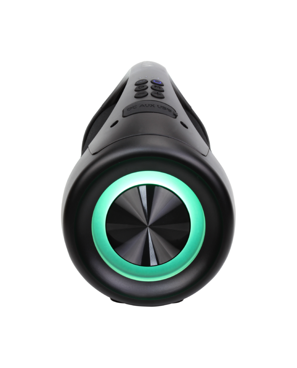 Novi Vivax bluetooth prijenosni zvučnik BS-211 dolazi sa 50W snage tepruža dubok i snažan zvuk uz reprodukciju do 6,5 sati na srednjoj razinizvuka. Uređaj se odlikuje funkcijom TWS uz koju možete jednostavnimpritiskom na TWS tipku povezati dva ista uređaja te na taj način uživatiu jačem zvuku te boljem stereo efektu. Jedna od glavnih odlika uređajaje njegova vodootpornost razine IPX 5. Sve to dolazi zapakirano uatraktivnom dizajnu, a tome pridonosi i ručka za lakši prijenos samoguređaja na kojoj se nalazi tipkovnica, što uvelike olakšava korištenjesamog uređaja. Za ugođaj pravog party-a pobrinut će se LED osvjetljenjeu bojama. Bluetooth prijenosni zvučnik, USB reproduktor; MP3; FM Radio s memorijom; AUX LINE in 3,5mm ; USB in; 2x25W RMS Audio izlaz,Napajanje: 3600mAhPunjiva baterija,TWS funkcija uparivanja zvučnika za jači zvuk i boljiStereo efekat