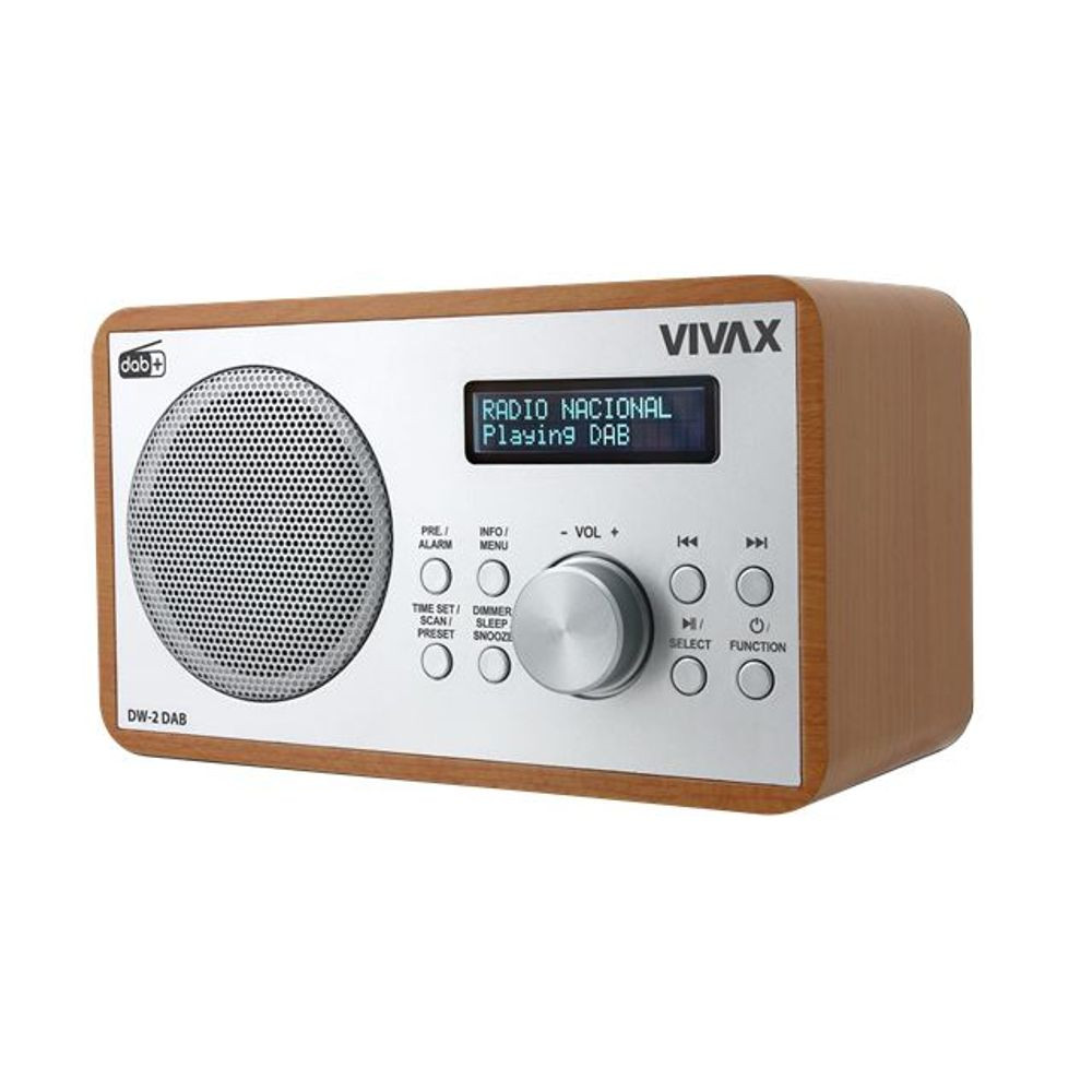 VIVAX Audio radio uređaji su kompaktni DAB+ radio uređaji koji zvučepunoveći nego što zapravo jesu. Unutrašnjost je prepuna tehnolog ijezvučnikakoju biste obično pronašli u tradicionalnim zvučnicima, ali svejesmanjeno i minimizirano na ovaj super kompaktni oblik. Stavite ganakuhinjski pult da dodate glazbeni začin svom kuhanju. DAB+ jenajnovijaverzija popularnog DAB radio standarda. Dobivate pr istupnajboljimradijskim kanalima, kvalitetnije od FM-a. Digitalni DAB+/FM radio s budilicom, Bluetooth zvučnik, 30DAB+30FMradiomemorija, Izlazna snaga: 2W ; AUX u 3,5 mm ; 3,5 mm izlaz zaslušalice;Drveno kućište; Napajanje: 230V 50Hz; , Teleskopska štapnaradio antena